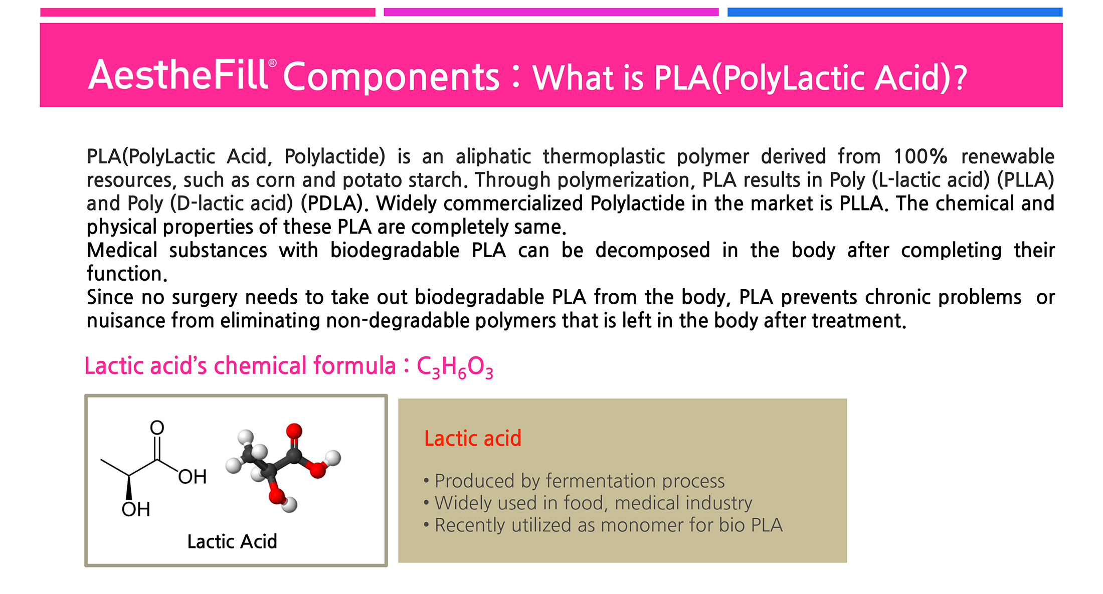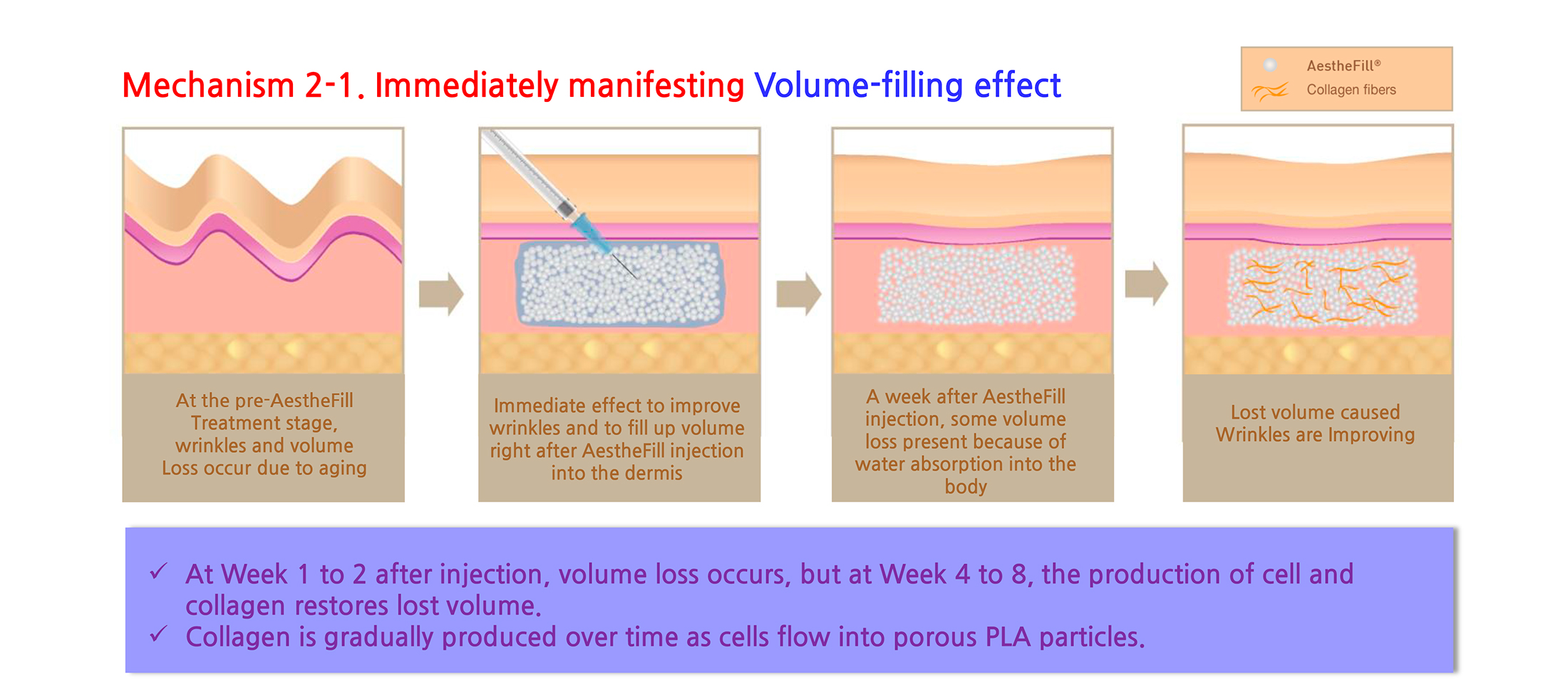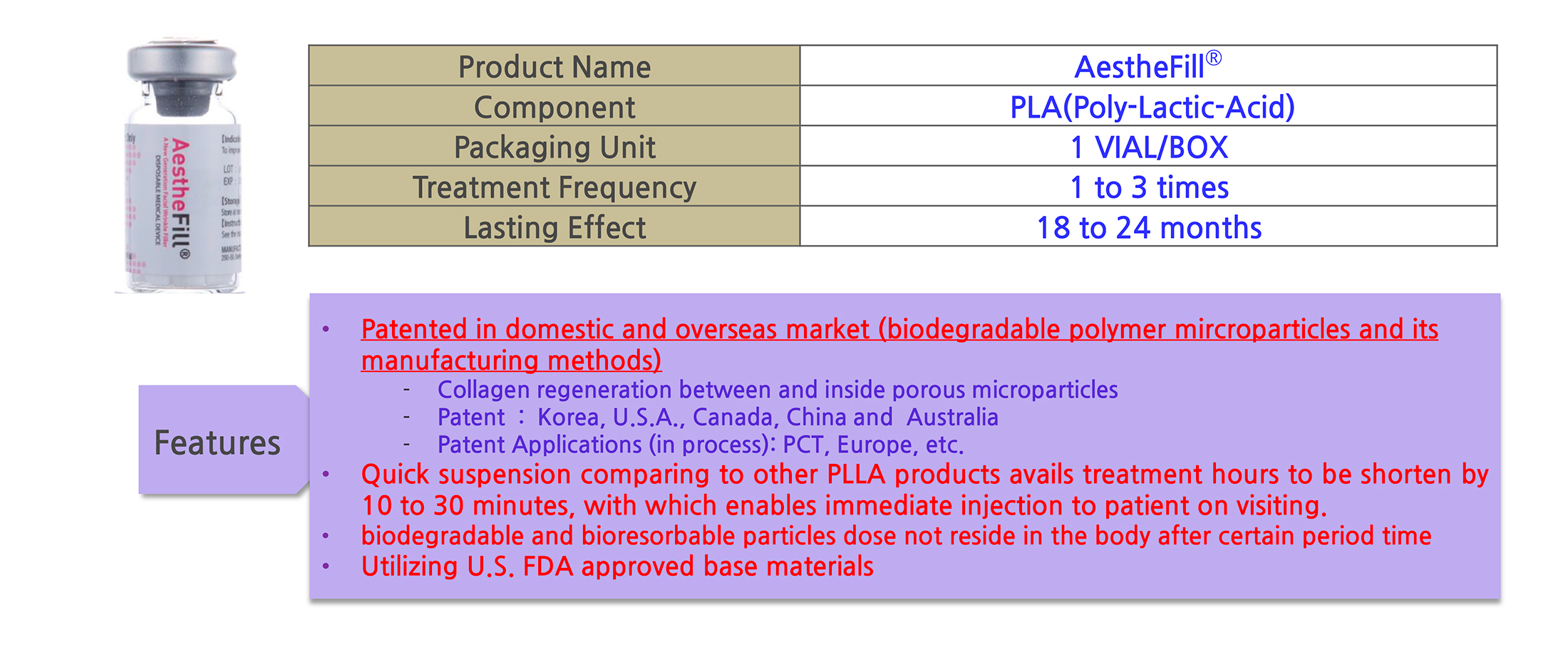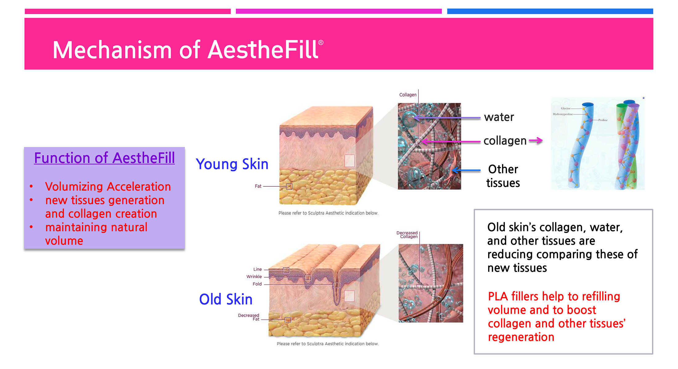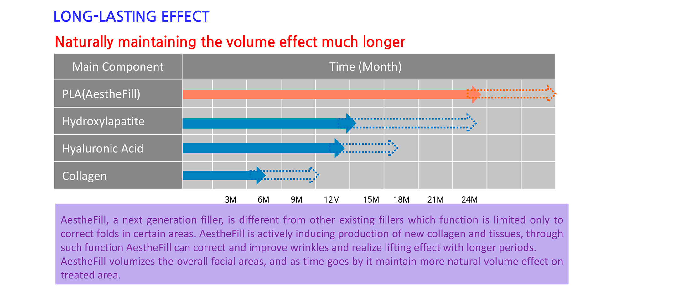 AestheFill (South Korea) belongs to a new generation of long-acting collagen stimulants. This highly effective filler is based on polylactic acid. It is a completely biodegradable and biocompatible hypoallergenic substance, as confirmed by histological studies at the Kangdong Sungsim Clinic at Hallym University.