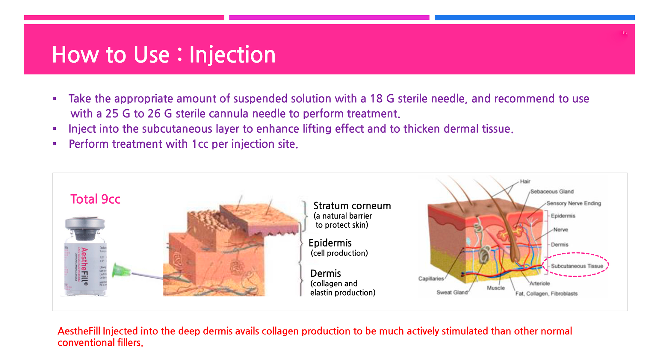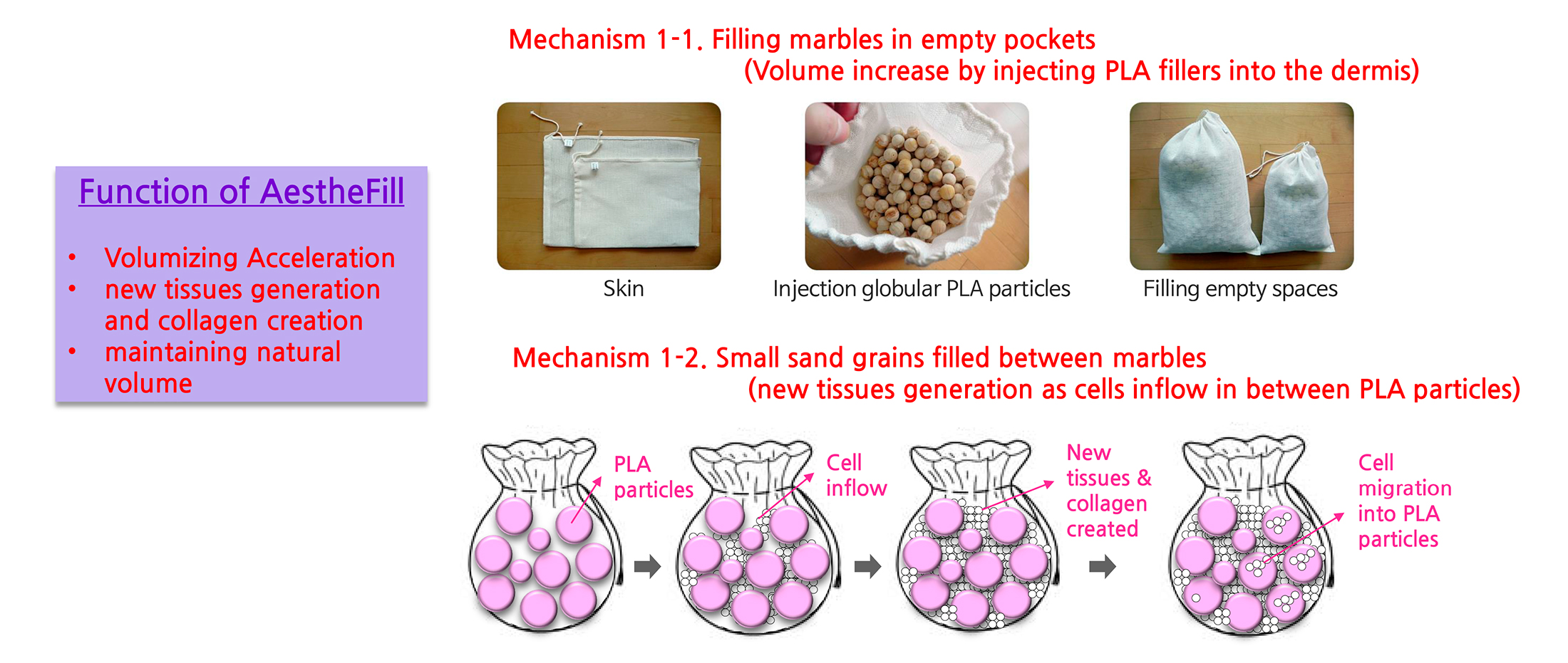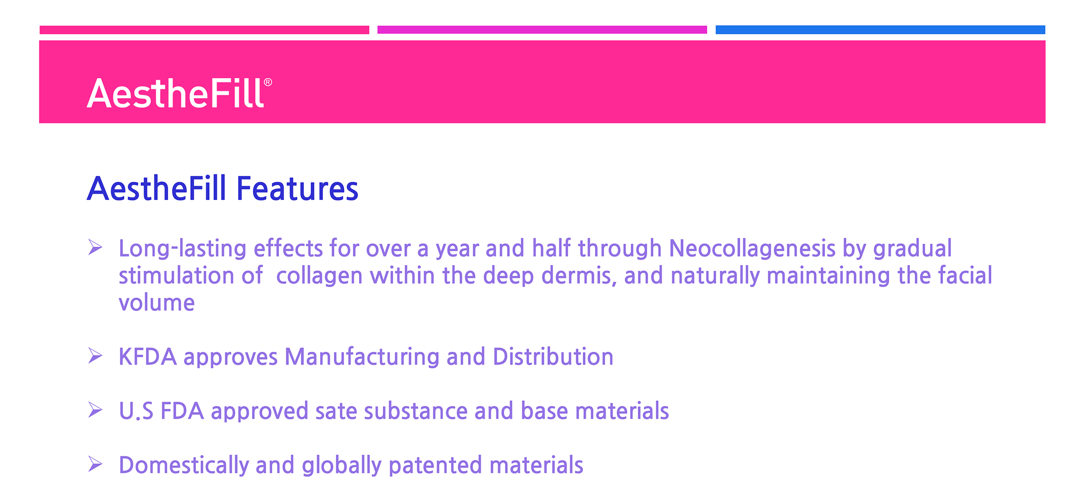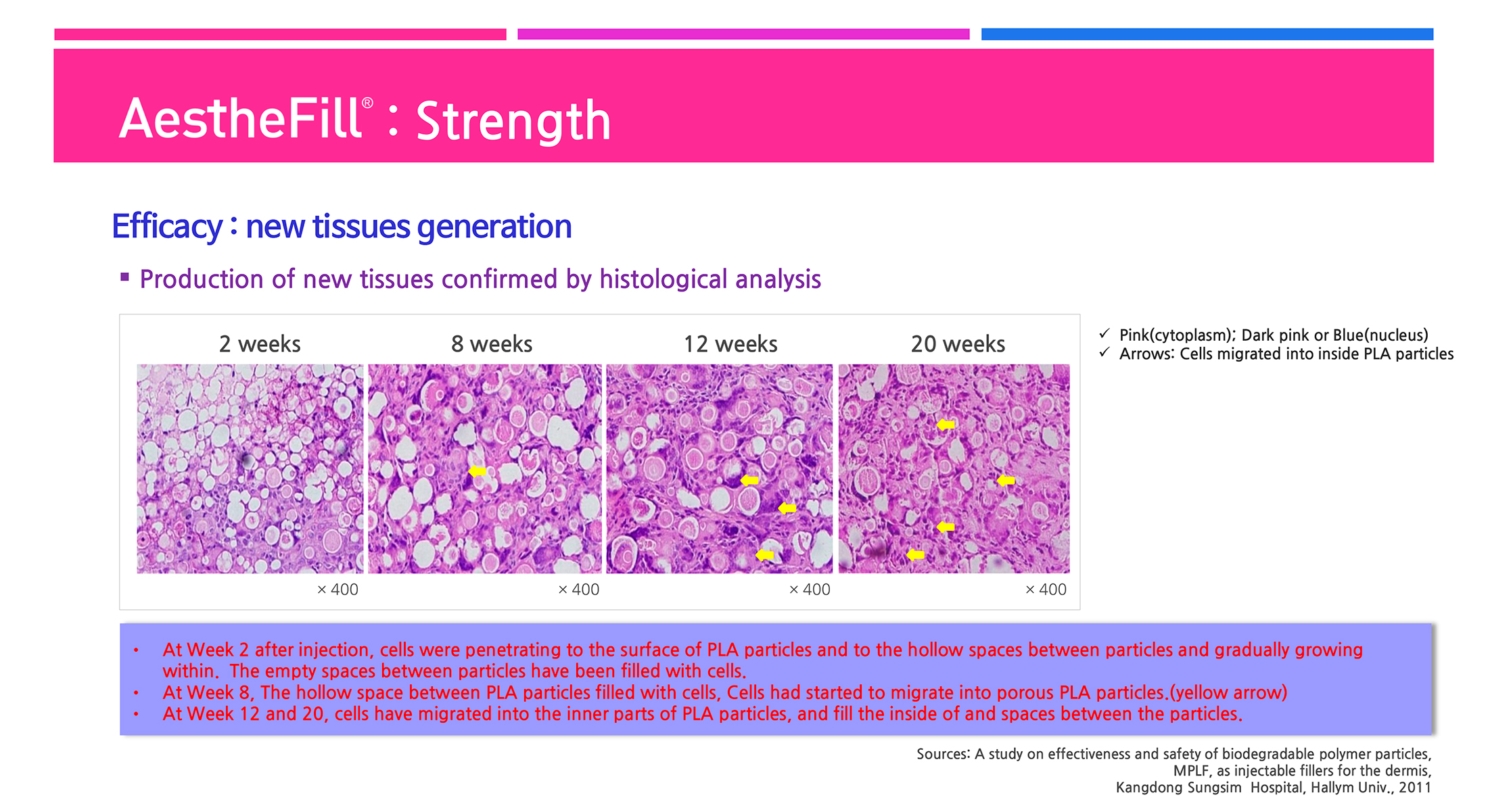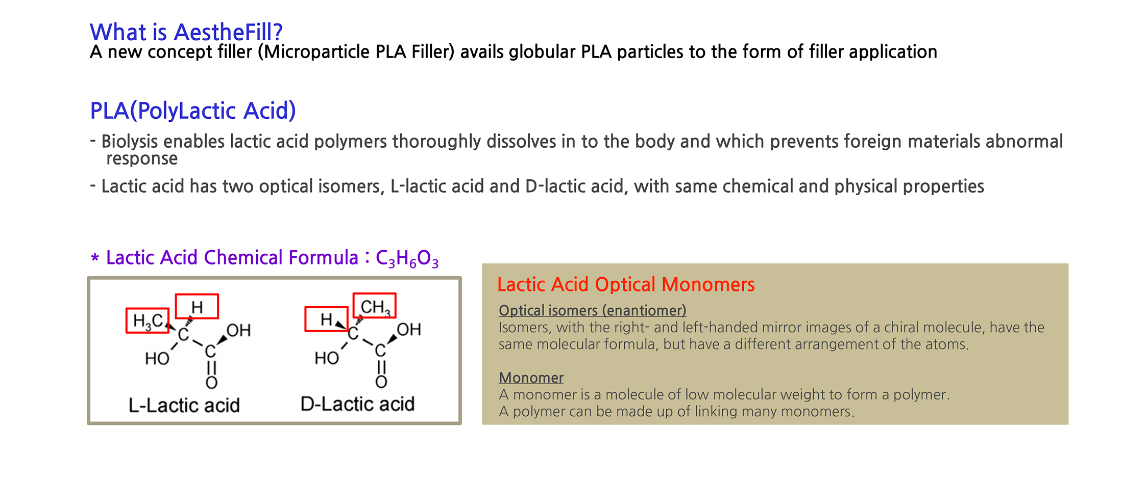 AestheFill (South Korea) belongs to a new generation of long-acting collagen stimulants. This highly effective filler is based on polylactic acid. It is a completely biodegradable and biocompatible hypoallergenic substance, as confirmed by histological studies at the Kangdong Sungsim Clinic at Hallym University.