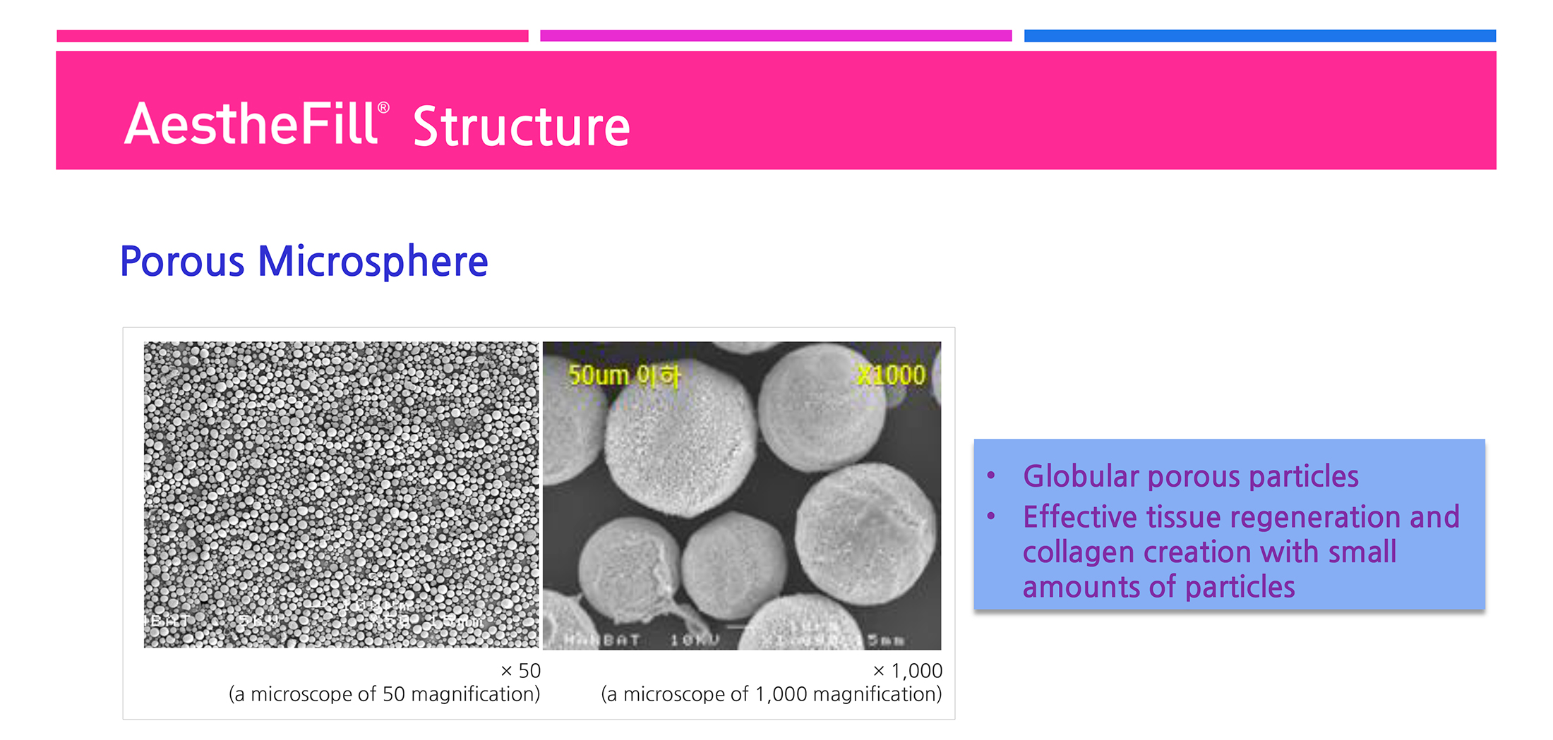 Thanks to the particle system (innovative porous microspheres), AestheFill stimulates the production of collagen and elastin.