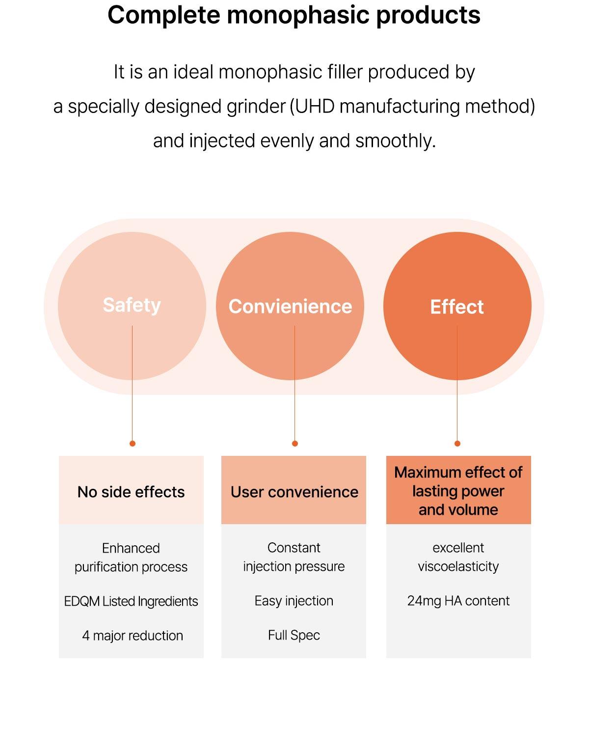 One syringe contains 1,0 mL of Cross linked Hyaluronic Acid injectable gel with Lidocaine.