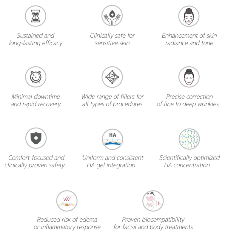 By preserving the natural recognition and degradation sites of HA as much as possible, it promotes a natural degradation process within the body and can be rapidly dissolved with hyaluronidase enzyme in emergencies, ensuring excellent biocompatibility.