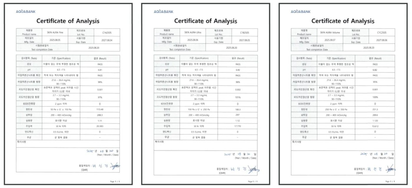 Skin Aura HA Filler is meticulously manufactured within a Class C cleanroom environment, rigorously managed with advanced HEPA filtration systems and pharmaceutical-grade purified water. This stringent control ensures the utmost safety and stability throughout the production process.